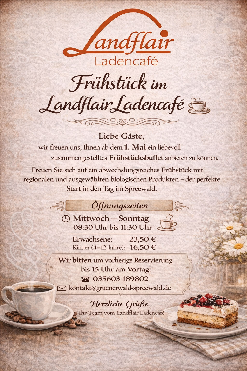 Diese Entscheidung ist uns nicht leicht gefallen, denn der klassische Nachmittagskaffee hat unser Café über viele Jahre geprägt. Gleichzeitig sehe ich darin auch eine Chance für einen neuen Abschnitt, der besser zu meiner persönlichen Situation passt und dem Café dennoch treu bleibt.